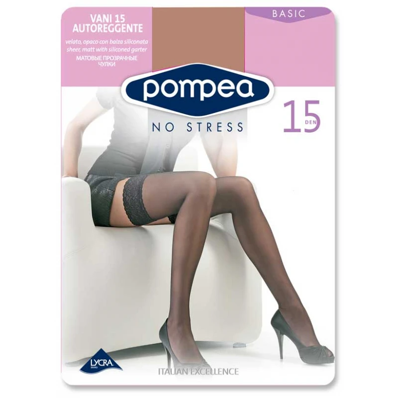 Calza Autoreggente Pompea Vany 15 den velata, opaca, per tutti i giorni, con balza in pizzo siliconata .Qualita’ Superiore Made in Italy