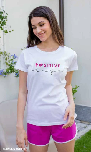 Completo Donna corto cotone 100% Lotto 5154 Outlet con maglia mezza manica stampata e pantalone corto