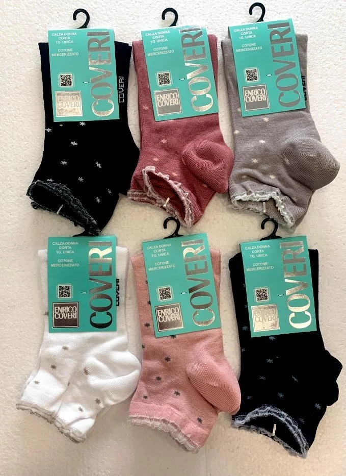 Calzino Donna Corto cotone mercerizzato Coveri Papaya 202 cotone leggero fantasia pois