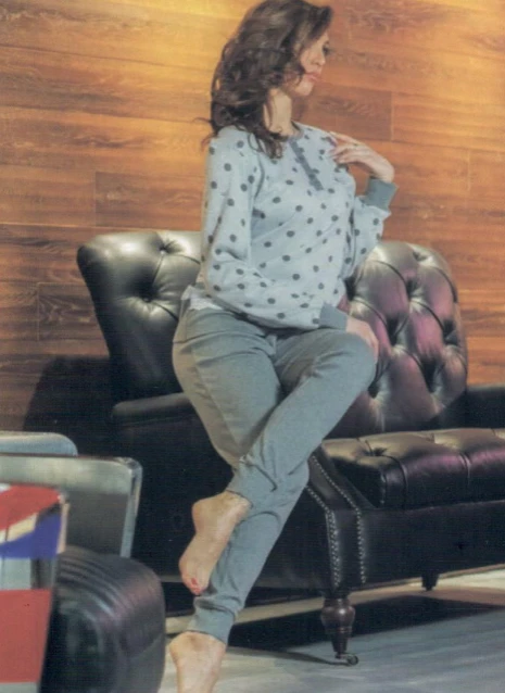Pigiama Donna caldo cotone Gabriella Gucci Outlet cotone pesante interlock maglia serafino fantasia pois e pantalone tinta unita