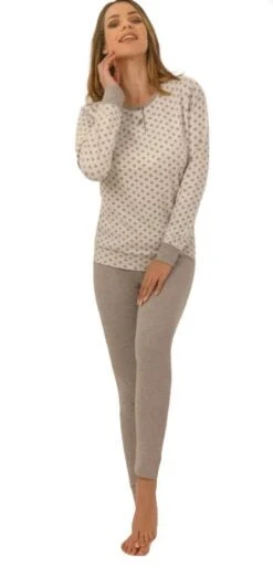 Offerta outlet campionario Pigiama Donna Fila 4067 cotone caldo invernale morbido e confortevole co maglia girocollo tinta unita con stampa con bordo ai polsi e pantalone fantasia con bordo alle caviglie tessuto elasticizzato ottima vestibilita’ e massimo confort