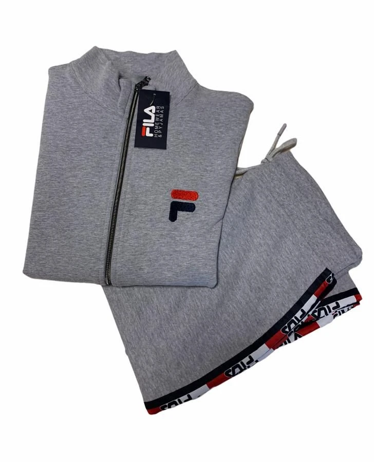Offerta outlet Campionario Tuta Donna Fila 4058 cotone felpato invernale con giacca tutta aperta con lampo e tasche avanti con logo piccolo laterale bordato ai polsi e in vita e pantalone con banda scritta fila laterale e laccio in vita tessuto elasticizzato massimo confort ed ottima vestibilita’