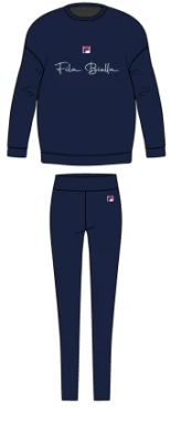 Offerta outlet Campionario Tuta Donna Fila 4057 cotone felpato Maglia girocollo tinta unita con scritta sul davanti con bordo in vita e ai polsi , pantalone tinta unita leggings tessuto elasticizzato massimo confort ed ottima vestibilita’ Composizione:95%cotone 5%elastan